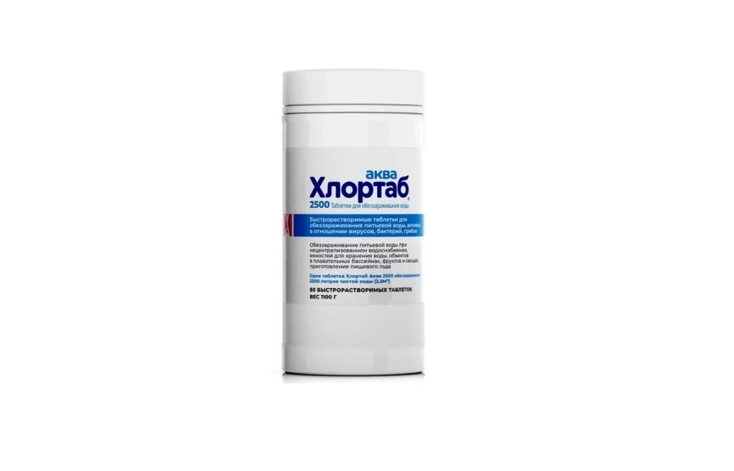 Состав Действующее вещество – натриевая соль дихлоризоциануровой кислоты. Содержание активного хлора в таблетке Хлортаб Аква 2500 – 5000 мг. В таблетке Хлортаб Аква 500 – 1000 мг. В таблетке Хлортаб Аква 150 – 300 мг. В таблетке...